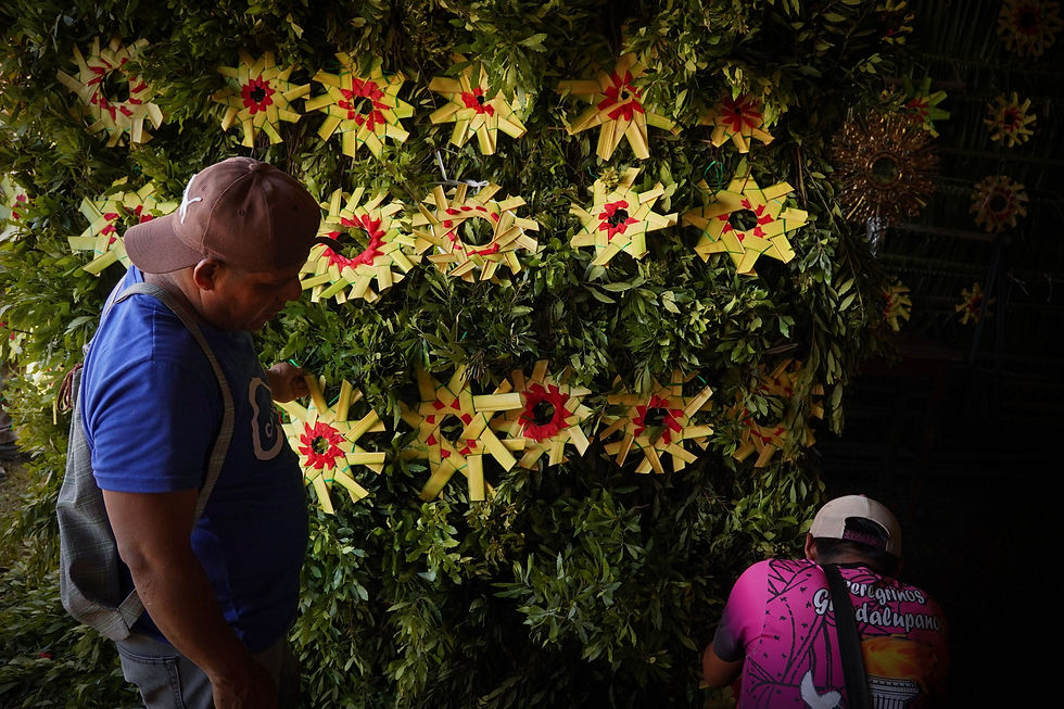 El delicado aroma de la flor de palma, uvero, platanillo, albahaca y encinillo, junto con las tradicionales estrellas y arcos de palma, adornan las iglesias de Cosoleacaque para celebrar la Semana Mayor.
